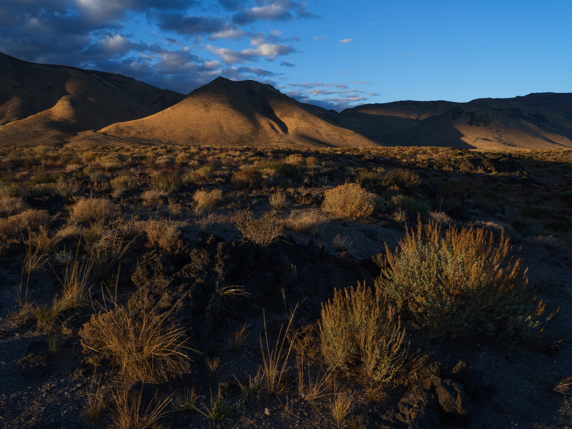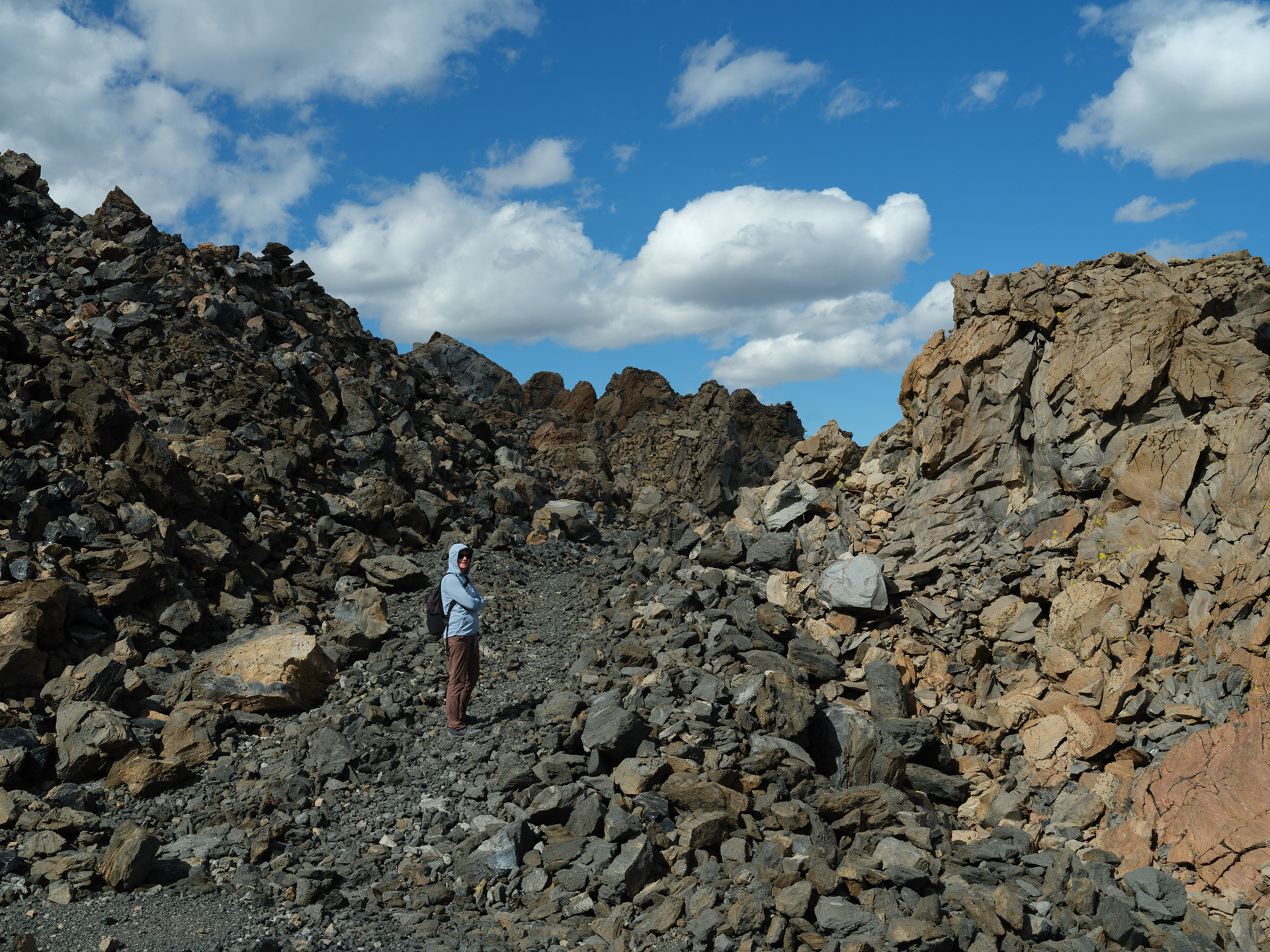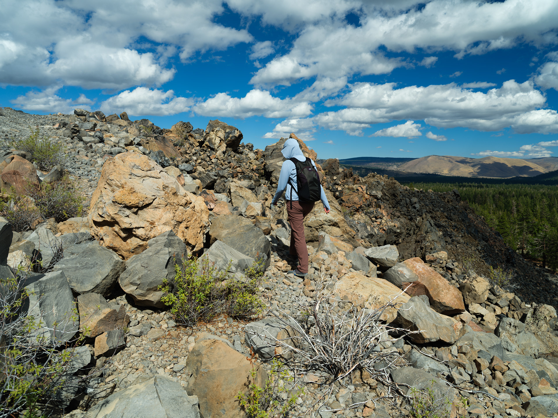 Puff clouds were back and I enjoyed the light and shadow play on the pines below the lava flow