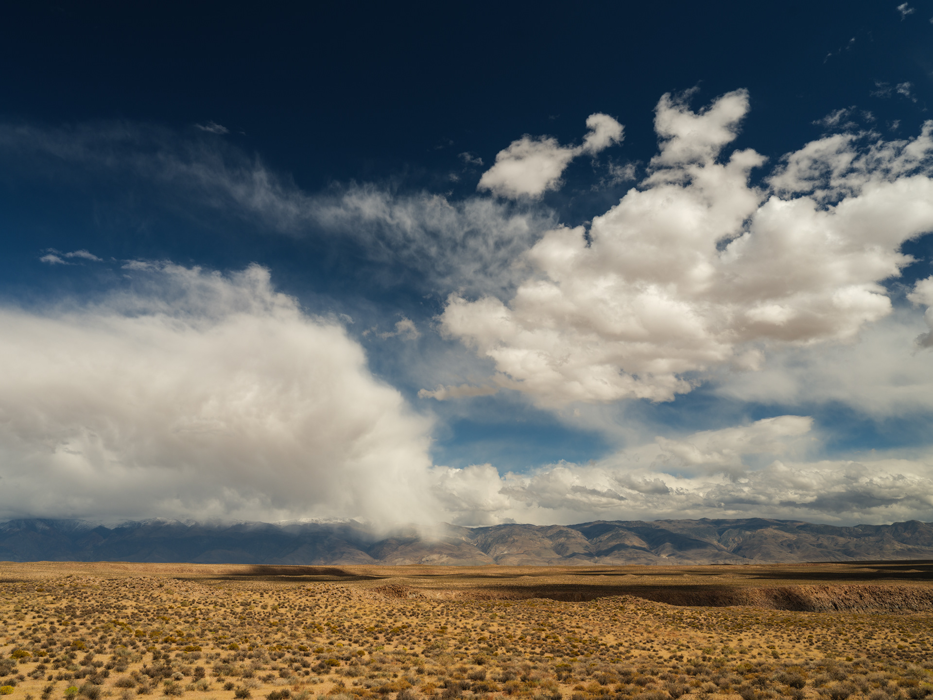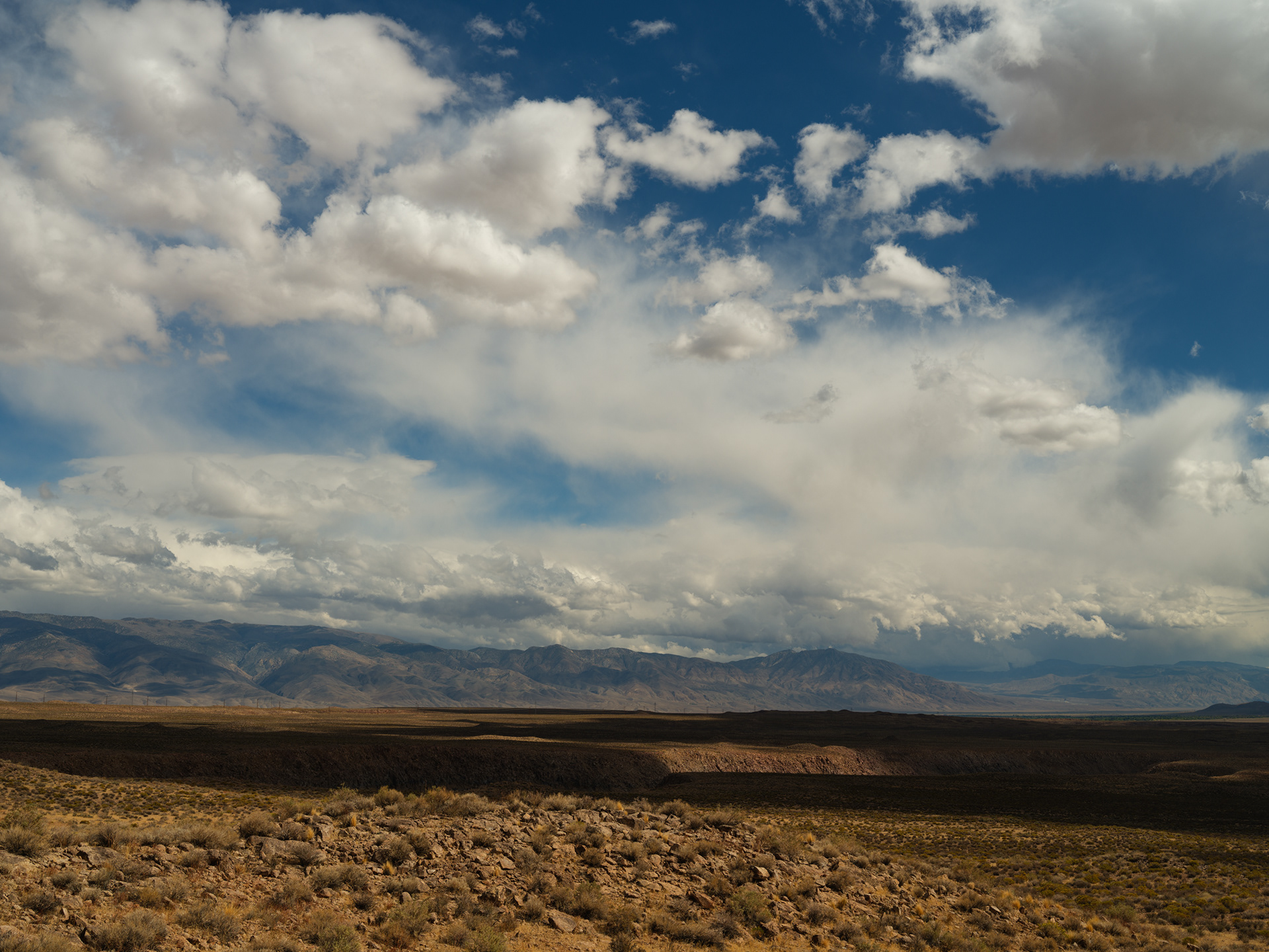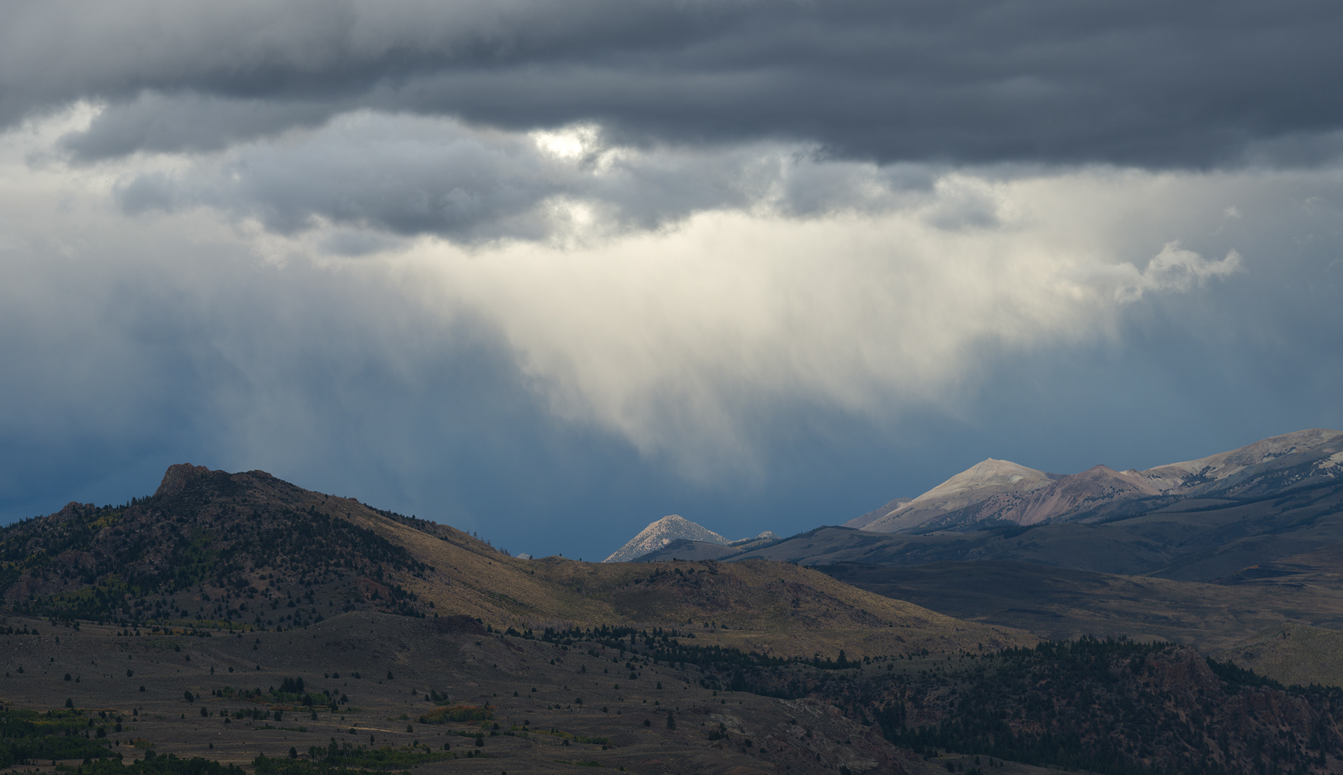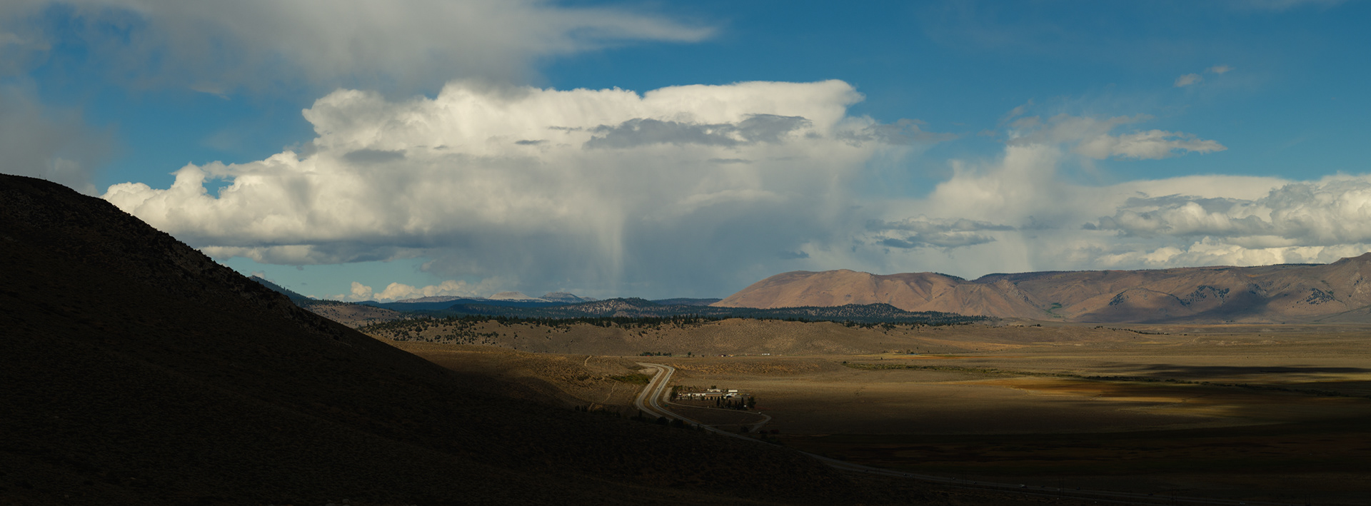Storm clouds kissing the tops of distant peaks as we came off Sonoma Pass near Hwy 395