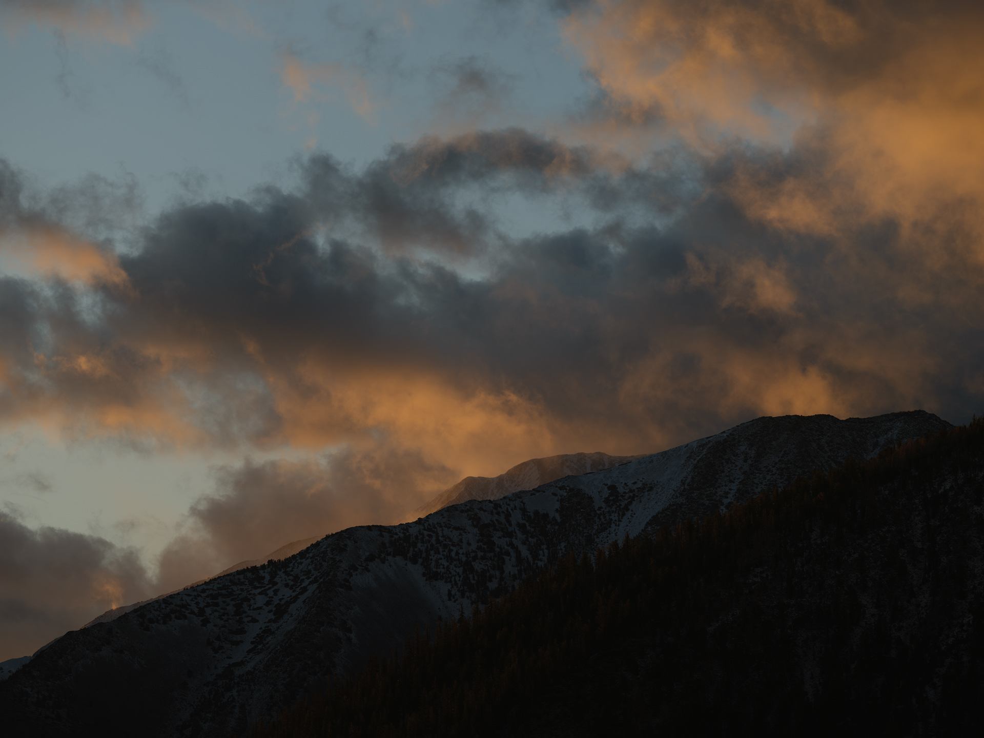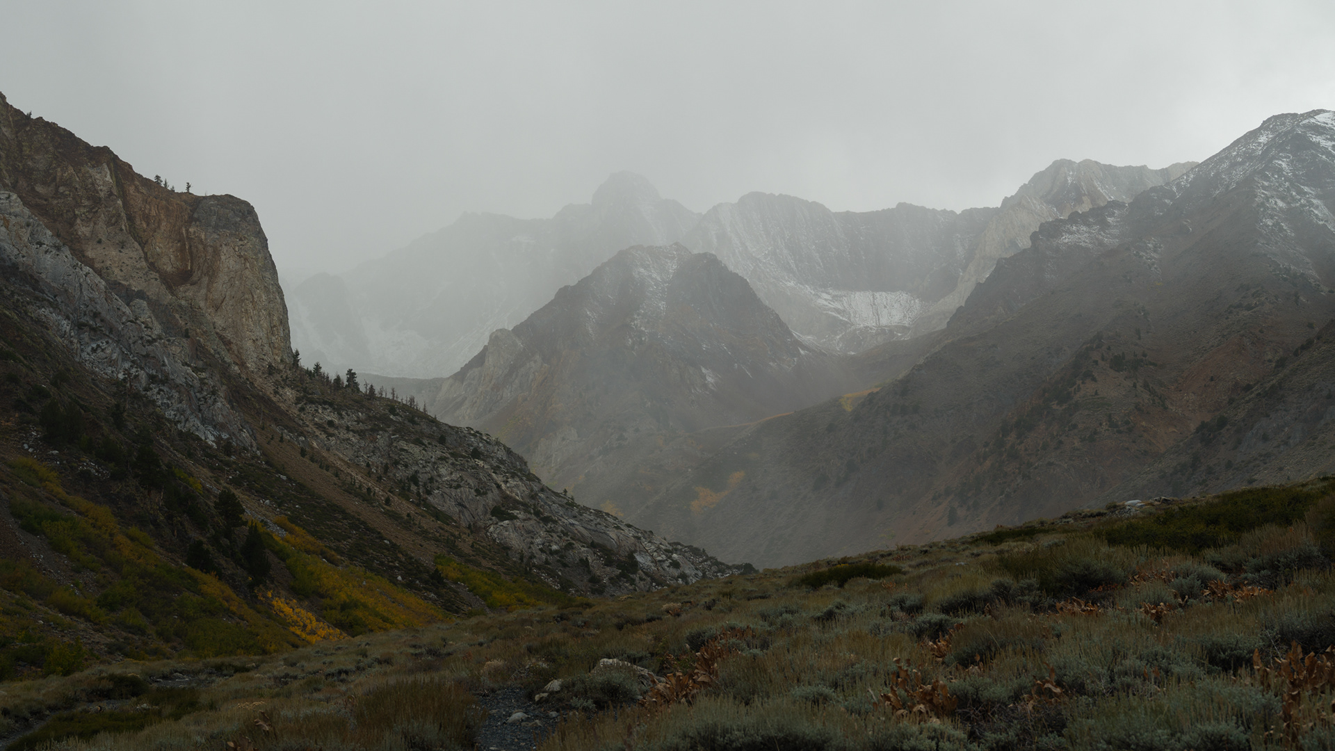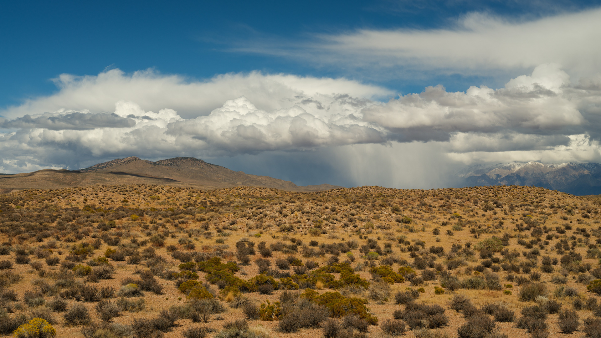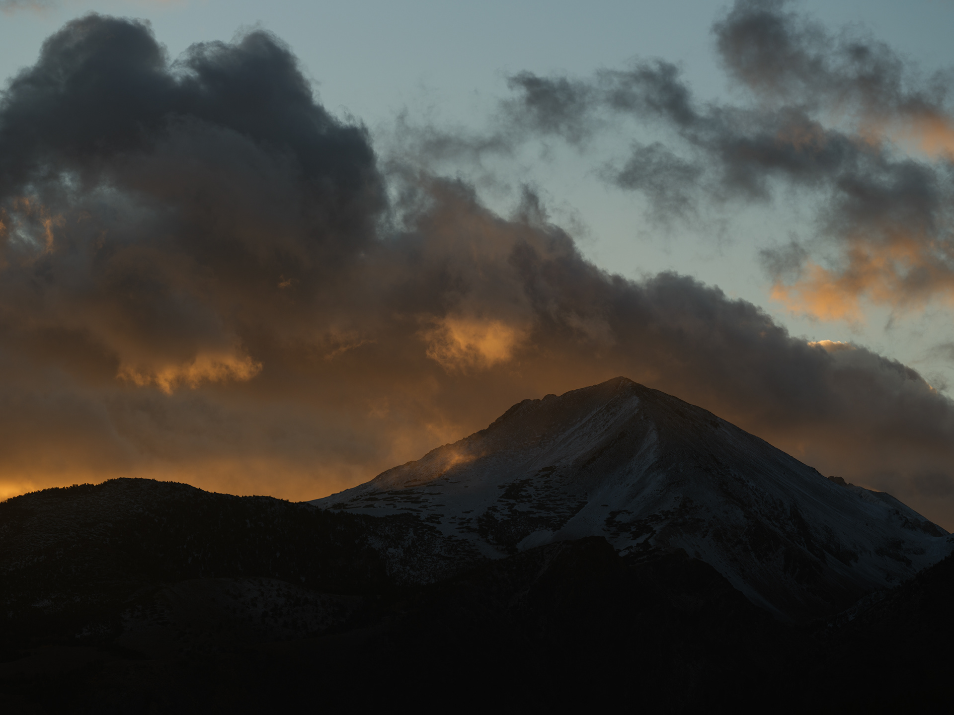Storm clouds kissing the tops of distant peaks as we came off Sonoma Pass near Hwy 395