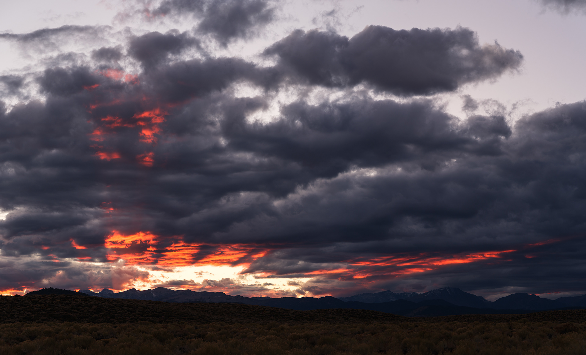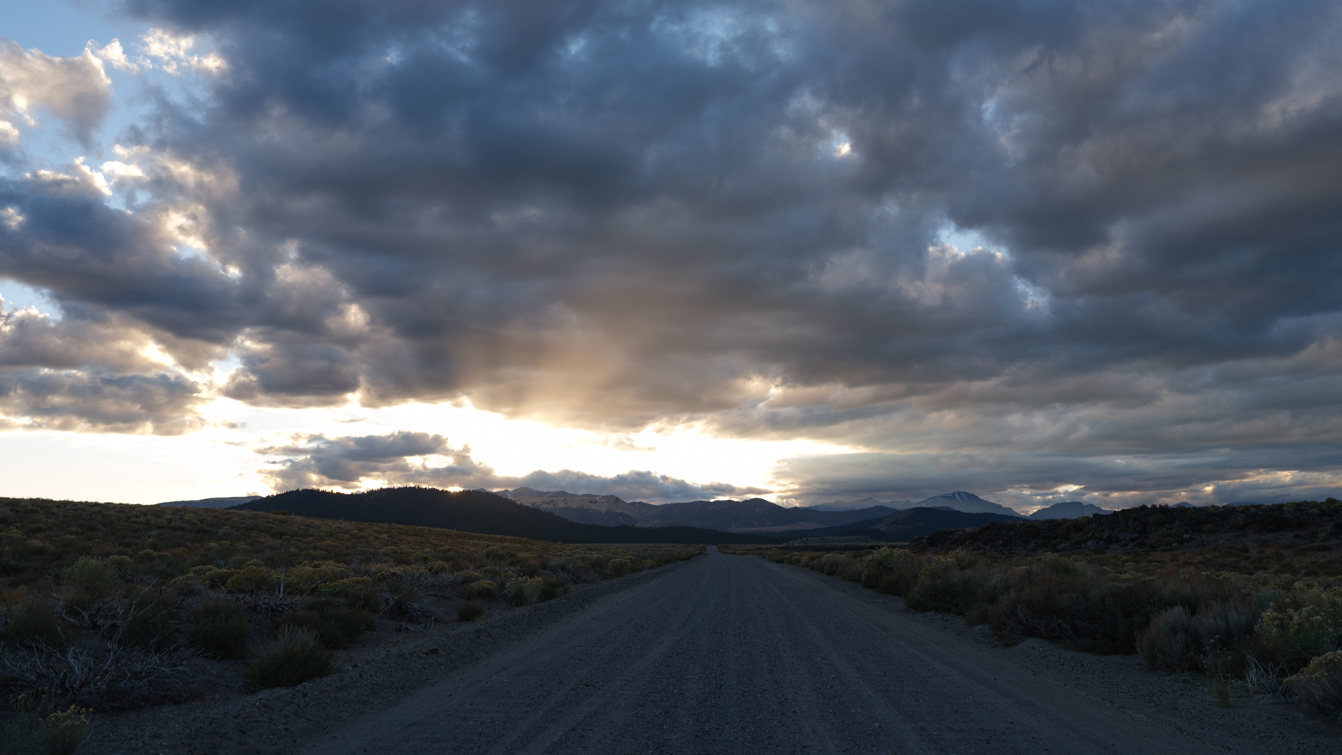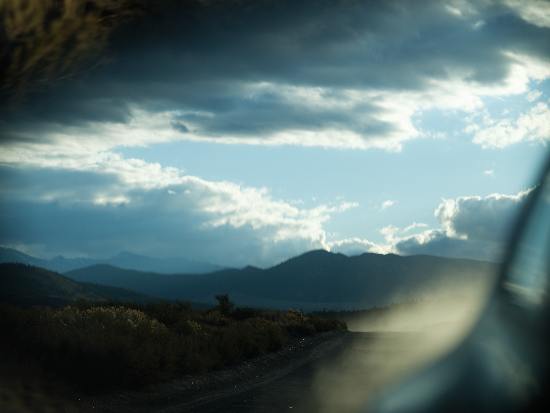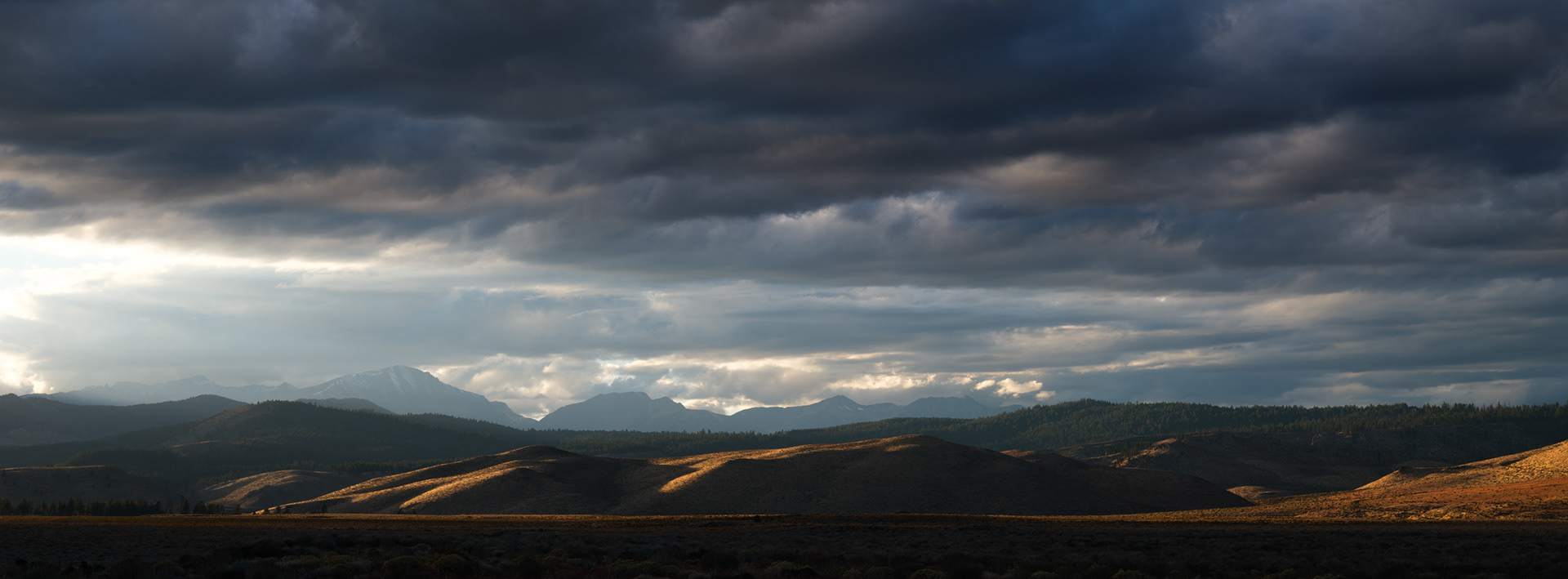 Storm clouds kissing the tops of distant peaks as we came off Sonora Pass near Hwy 395