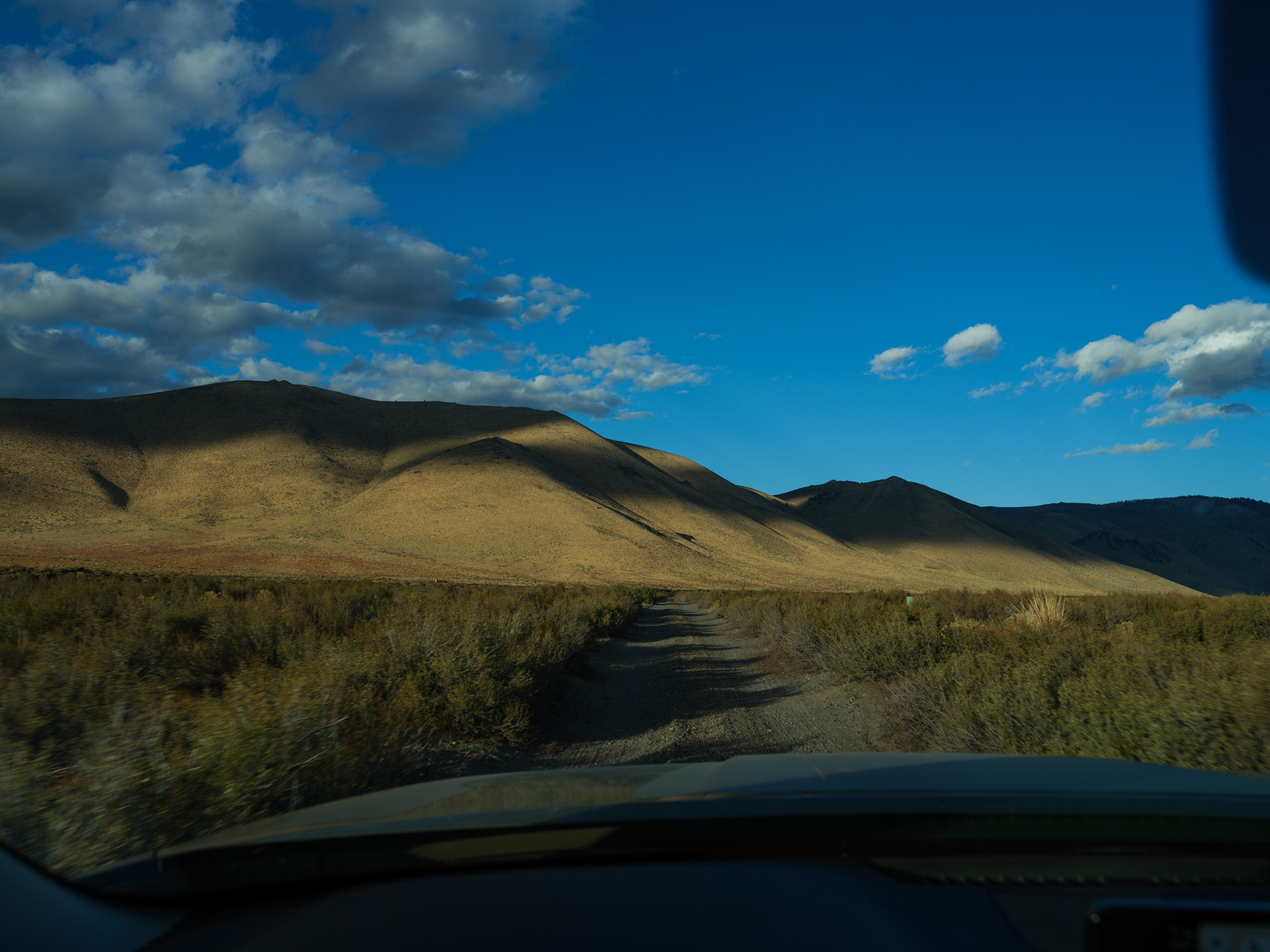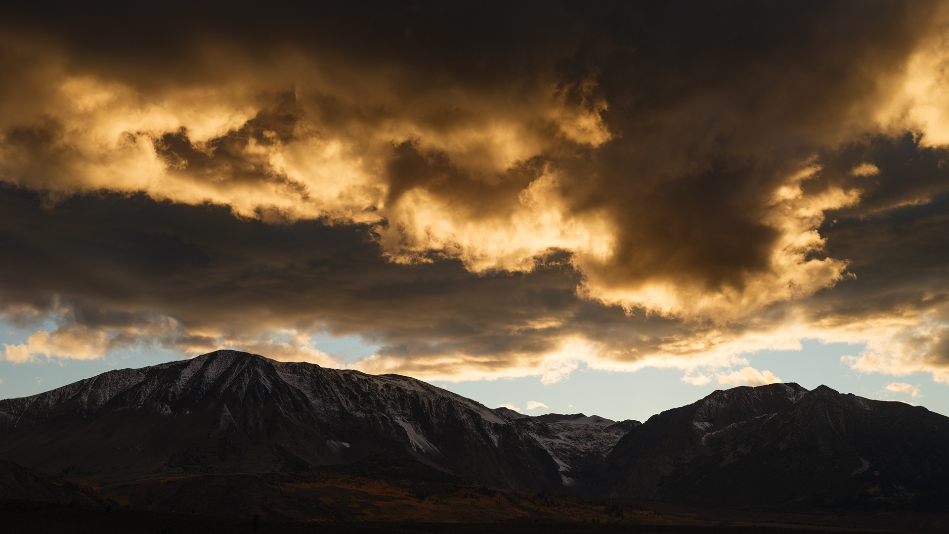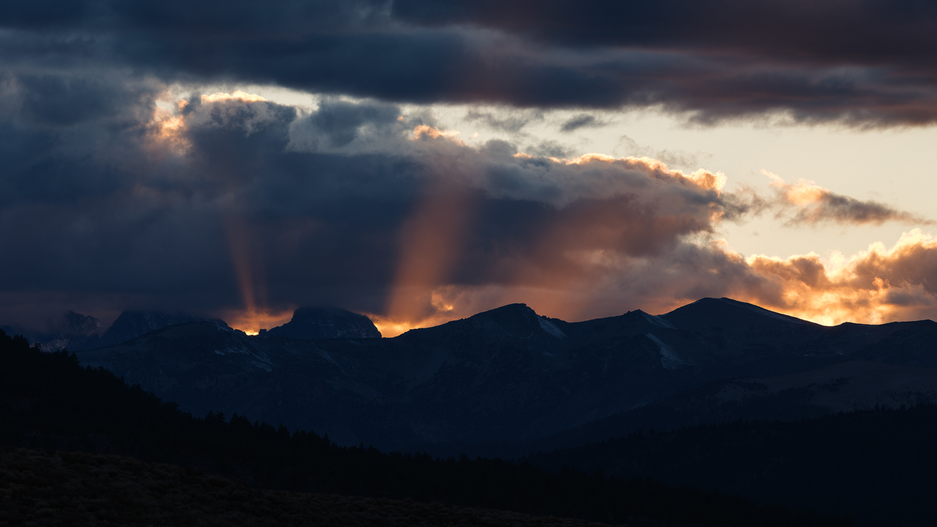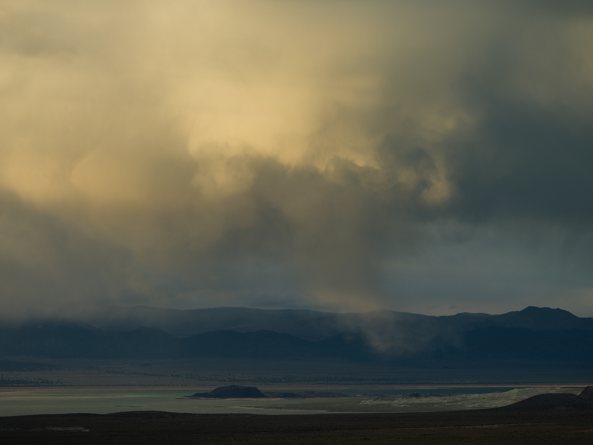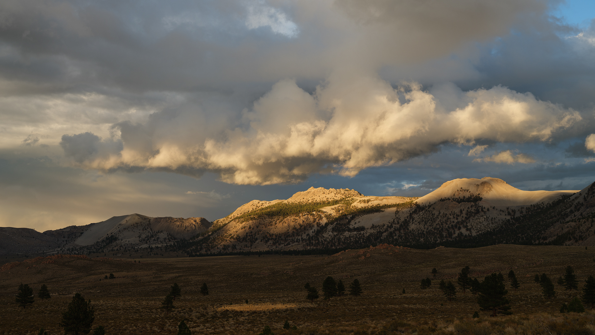 Storm clouds kissing the tops of distant peaks as we came off Sonora Pass near Hwy 395